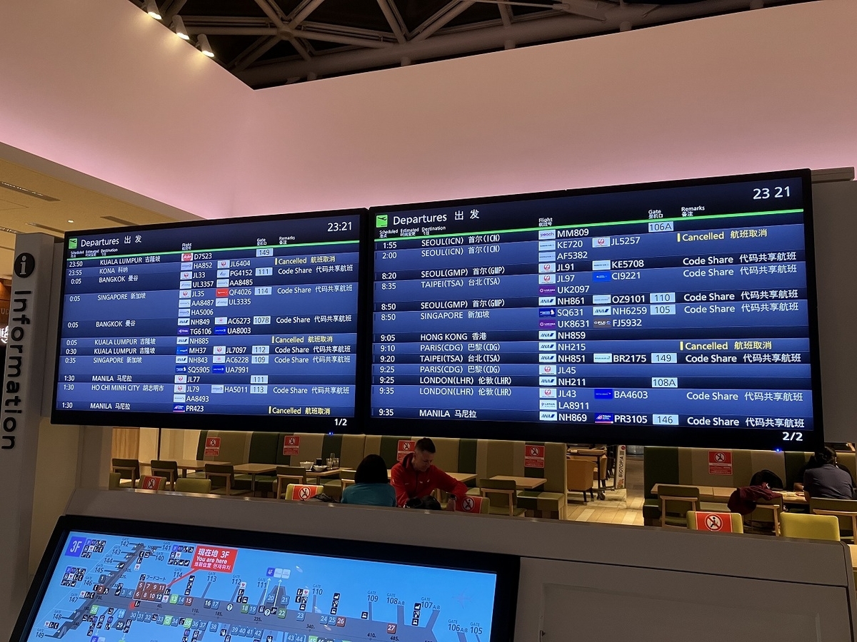 コロナ明けの深夜便ですが、2022年11月現在、ハワイアン航空のコナ便、ANAのクアラルンプール便、大韓航空の仁川便が運休しています。