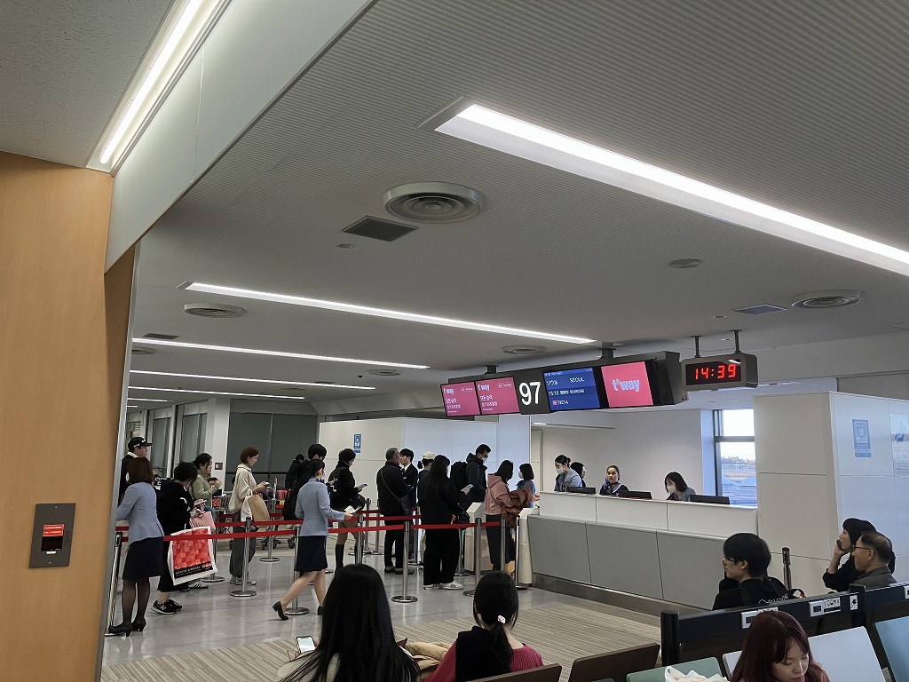 ティーウェイ航空はDカウンターを使用します。列もほとんど並ぶことなくチェックインできました。